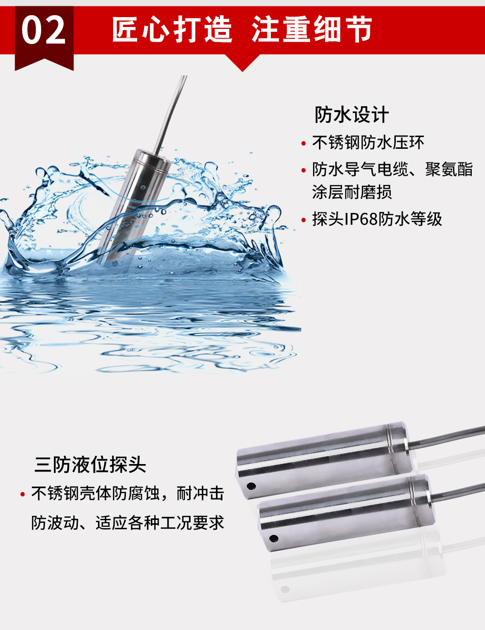 感應靈敏、防水、防塵、防波動。