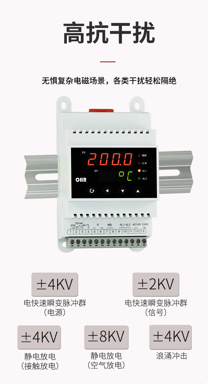 OHR-DN10系列導軌式數字顯示控制儀采用了表面貼裝工藝,全自動貼片機生產,具有很強的抗干擾能力。可對溫度、壓力、液位等工業過程參數進行測量、顯示、報警控制、變送輸出、數據采集及通訊。