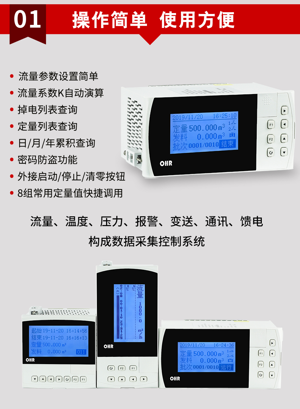OHR-F670系列液晶定量控制流量積算儀是一款接收來自各種流量傳感器(如渦輪、渦街、電磁等流量計(jì)) 及電磁閥泵體配套組成并能對(duì)流量進(jìn)行積算、對(duì)定量進(jìn)行控制的流量測(cè)量控制系統(tǒng)。