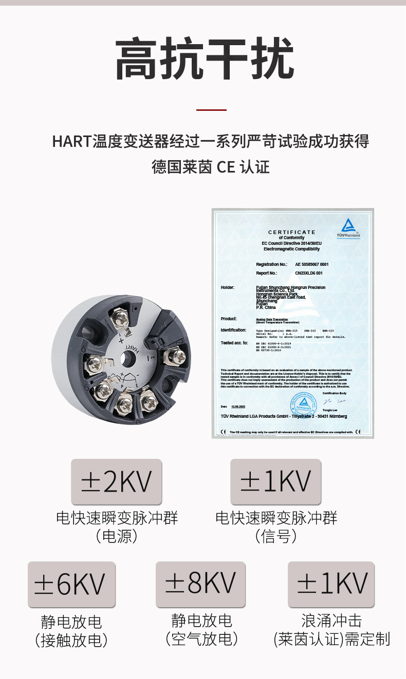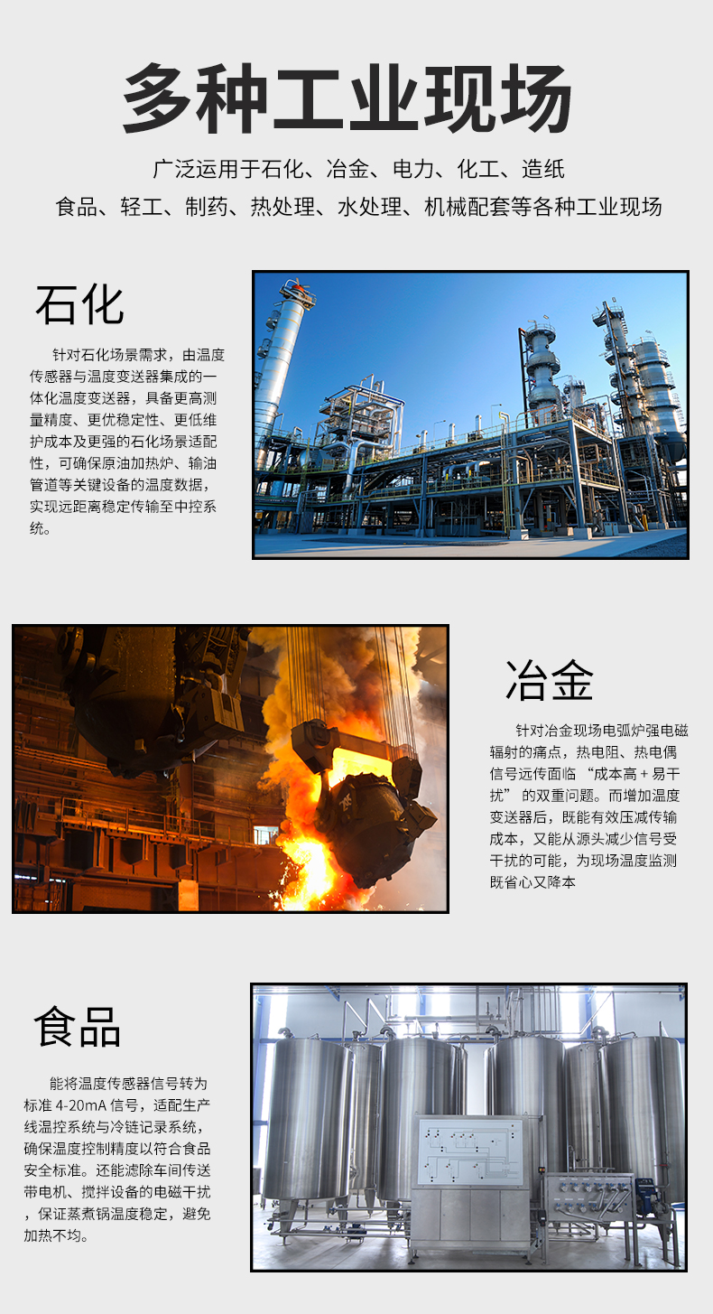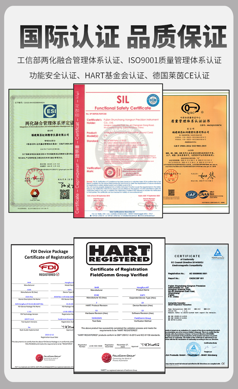 虹潤公司是專業生產溫度變送器的國家專精特新“小巨人”企業。生產的智能溫度變送器,具有適配各類溫度傳感器,精度高,穩定性好,通過編程線修改輸入信號類型及量程,高抗干擾等特點。該產品不僅通過HART基金會認證、德國萊茵 CE 認證與 SIL 功能安全認證,還獲得具備減震抗干擾能力的溫度變送器、信號隔離器、一種二端子模塊、無源信號隔離器等4項國家發明專利,主持起草物聯網智能溫度儀表、現場設備工具(FDT)接口規范、工業過程控制系統用模擬輸入兩位或多位輸出儀表、工業過程測量和控制系統用溫度變送器等4項國家標準,參與國際5G標準制定,取得智能溫度變送器、HART溫度變送器等3項相關軟件著作權。產品廣泛應用于石油、化工、電力、冶金、制藥、食品、水處理等各種工業領域。