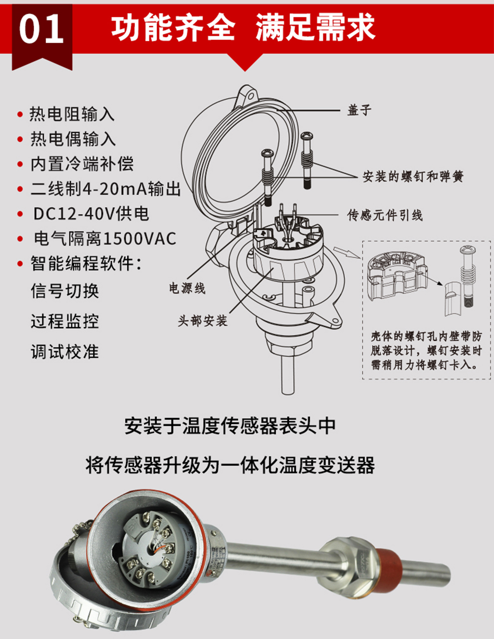 OHR-214隔離智能溫度變送器(圓卡),用于熱電阻(RTD)、熱電偶(TC)信號輸入,二線制4~20mA模擬輸出,安裝于傳感器內部(Form B)。