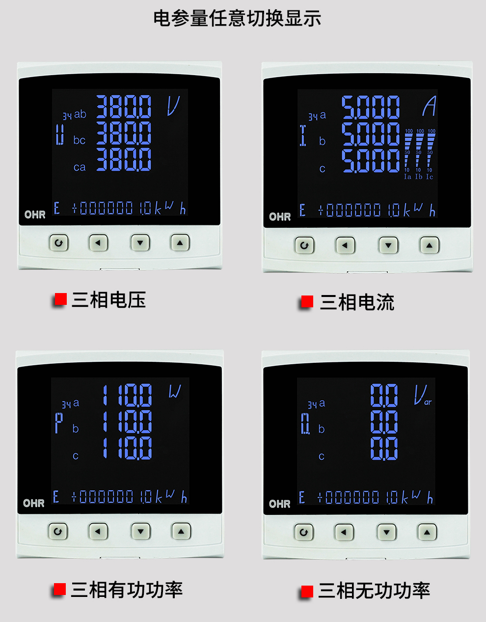 OHR-C500系列液晶綜合電量集中顯示儀是一款用于中低壓系統智能化裝置,集數據采集和控制功能于一身,具有電力參數測量及電能計量為一體。它采用大規模集成電路和高亮度長壽命的LED顯示器并支持RS485接口MODBUS通訊協議或多種協議。