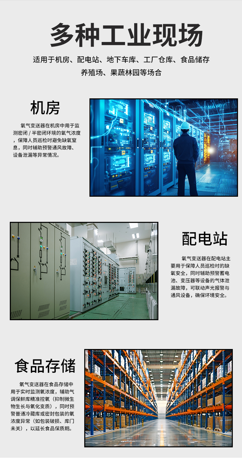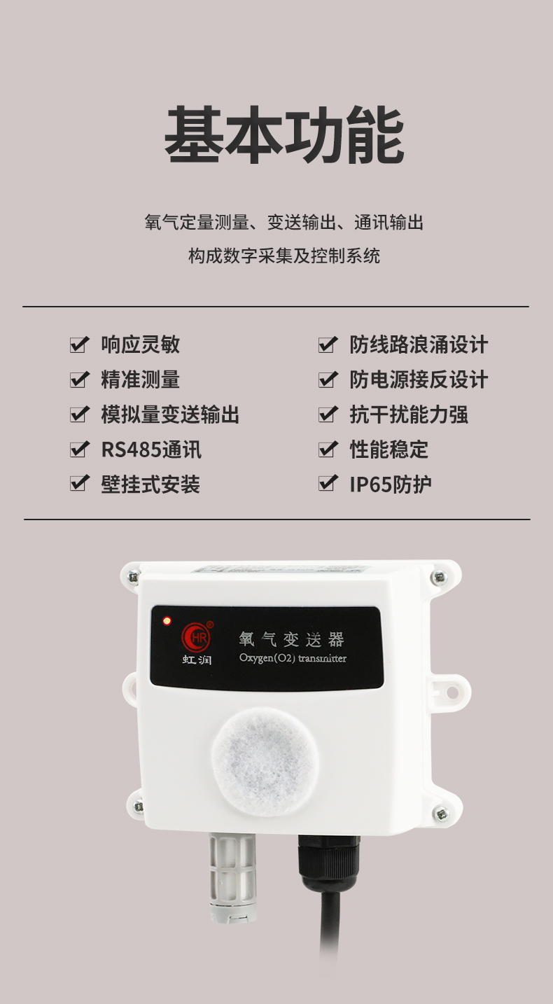 虹潤(rùn)公司是專業(yè)生產(chǎn)環(huán)境監(jiān)測(cè)儀表的國(guó)家專精特新“小巨人”企業(yè)。生產(chǎn)的氧氣變送器,具有采用電化學(xué)原理,響應(yīng)靈敏,準(zhǔn)確度高,低功耗,模擬量變送輸出或RS485通訊等特點(diǎn)。產(chǎn)品獲得一種農(nóng)業(yè)監(jiān)控變送器、一種儀表電源等2項(xiàng)實(shí)用新型專利,主持起草現(xiàn)場(chǎng)設(shè)備工具(FDT)接口規(guī)范、物聯(lián)網(wǎng)總體技術(shù)智能傳感器特性與分類等2項(xiàng)國(guó)家標(biāo)準(zhǔn),參與國(guó)際5G標(biāo)準(zhǔn)制定,取得農(nóng)業(yè)監(jiān)控變送器等3項(xiàng)相關(guān)軟件著作權(quán)。產(chǎn)品廣泛應(yīng)用于機(jī)房、配電站、地下車庫(kù)、工廠倉(cāng)庫(kù)、食品儲(chǔ)存、養(yǎng)殖場(chǎng)、果蔬林園等環(huán)境場(chǎng)合對(duì)氧氣濃度的檢測(cè)。