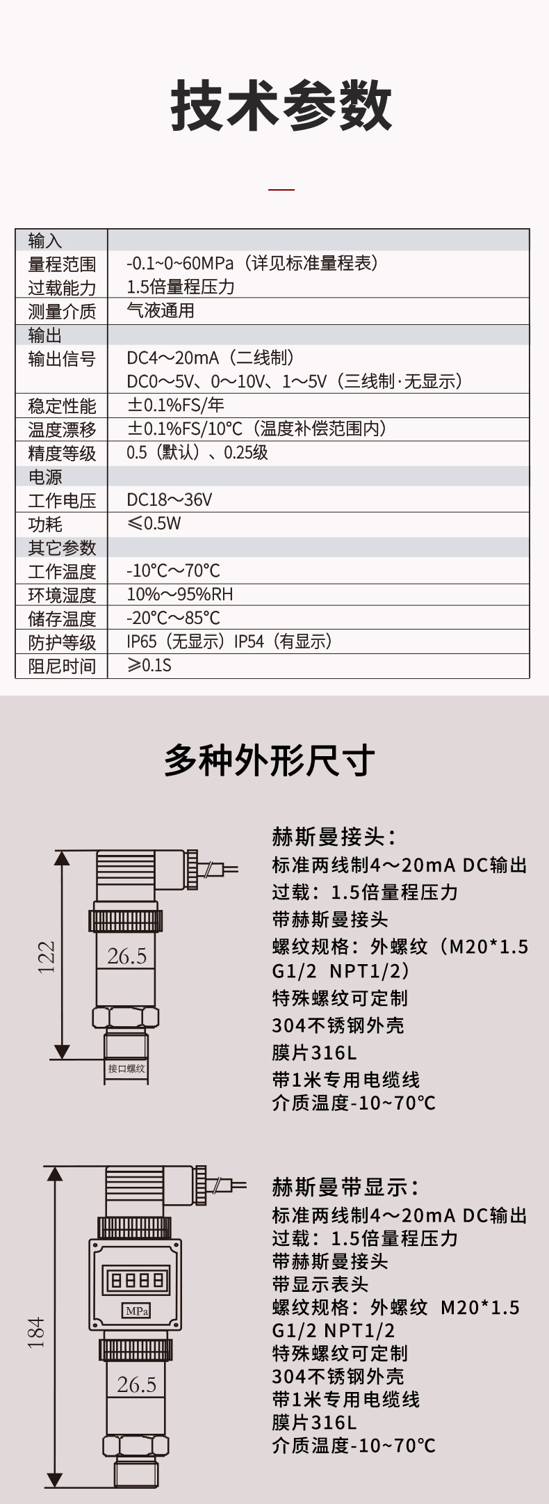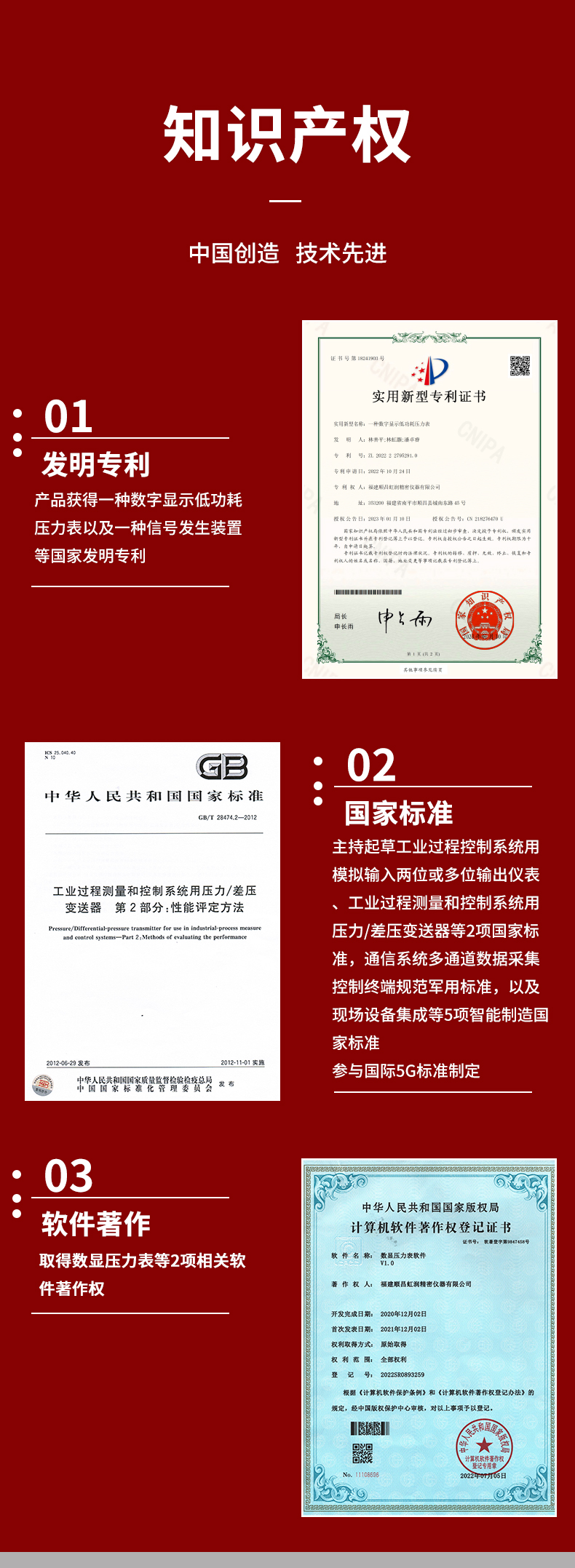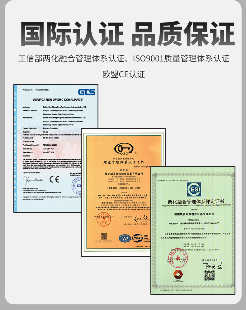 虹潤公司是專業生產壓力變送器的國家專精特新“小巨人”企業,生產的小巧型壓力變送器,具有采用進口芯體,量程范圍寬,抗沖擊抗震動,多種螺紋接口,性能穩定等特點。產品獲得一種數字顯示低功耗壓力表、一種信號發生器裝置等2項國家發明專利,主持起草工業過程控制系統用模擬輸入兩位或多位輸出儀表、工業過程測量和控制系統用壓力/差壓變送器等2項國家標準,通信系統多通道數據采集控制終端規范軍用標準,以及現場設備集成等5項智能制造國家標準,參與國際5G標準制定,取得數顯壓力表等2項相關軟件著作權。產品廣泛應用于化工、食品、制藥、電力、設備配套、供暖、水處理、樓宇等行業,需精準測量流體壓力的現場。