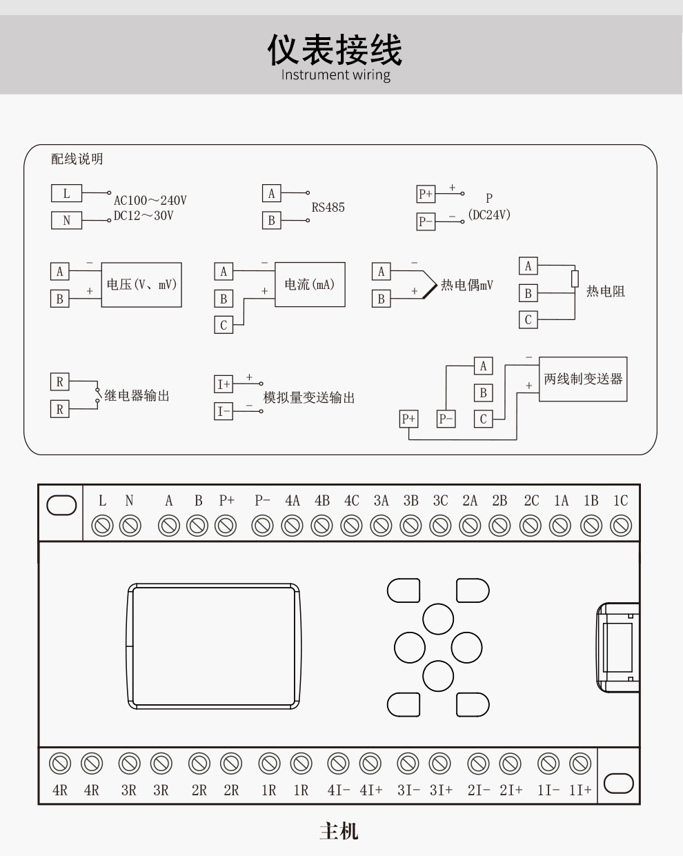 OHR-PR40系列數據控制器多重保護和隔離設 計,抗干擾能力強,可靠性高。儀表采用主副機結構設計,主機可提供4路萬能信號輸入,通道間 相互隔離;4限報警輸出、4路變送輸出,饋電輸出、RS485通訊、以太網通訊等功能,連接副機可將I/O容量 擴展至8路輸入和8限報警輸出、8路變送輸出。